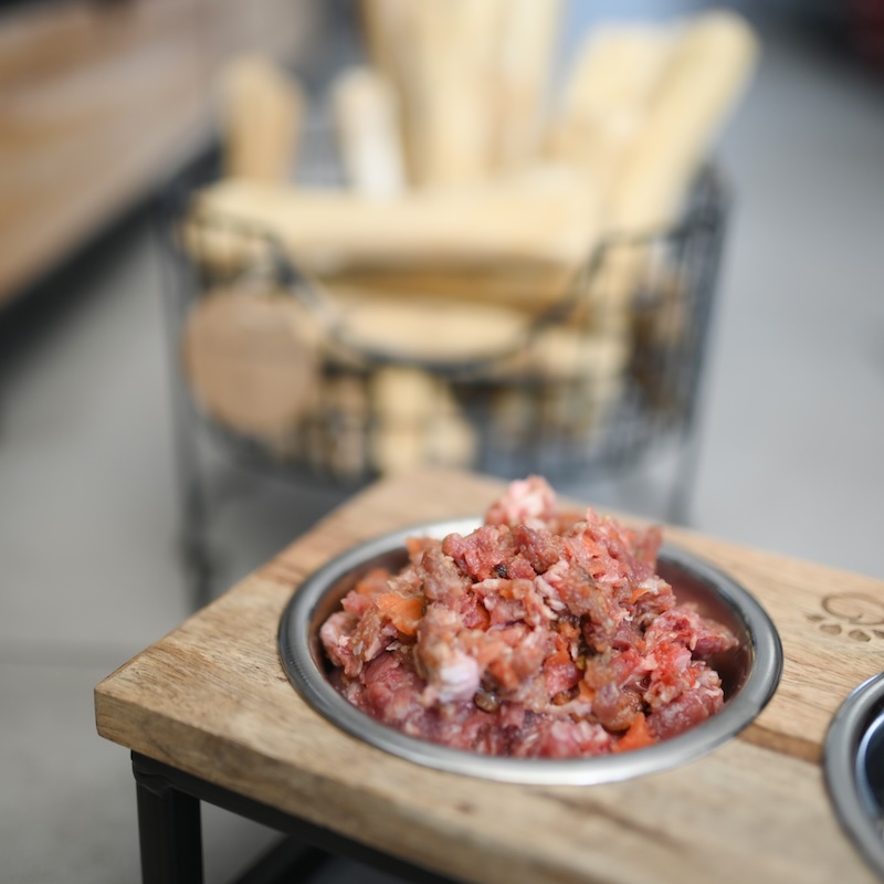 | Fütterungsempfehlung | Faustregel: 2-3% des Körpergewichts des erwachsenen Hundes, bei Welpen und Junghunden kann der Bedarf deutlich höher sein, hier gelten ca. 5-6% des Körpergewichts als Richtwert. Die Fütterungsmenge muss auf individuelle Gegebenheiten (Aktivität, Alter, Rasse etc.) und Bedürfnisse deines Lieblings angepasst werden! Am Wichtigsten ist, dass die Figur des Hundes stimmt, die Rippen müssen deutlich spürbar, jedoch nicht sichtbar sein. |