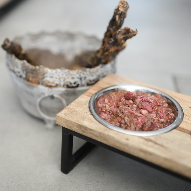 Eine vollwertige Barfmahlzeit im perfekten Verhältnis aller Bestandteile, bestehend aus 80% ausgewogenem Ziegenmix und 20% schmackhaftem, saisonalen Obst & Gemüse. Sie ist ein rundum sorglos Paket aus perfekter Zusammenstellung. Auftauen, Öl und ggf. Seealge dazu, ab in den Napf – fertig!