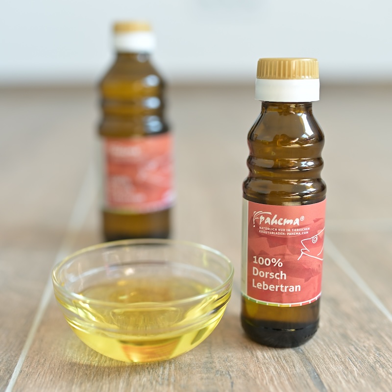 Lebertran sorgt für ein schönes Fell und beugt Haarausfall vor. Er unterstützt den Stoffwechsel und wirkt wachstumsfördernd.