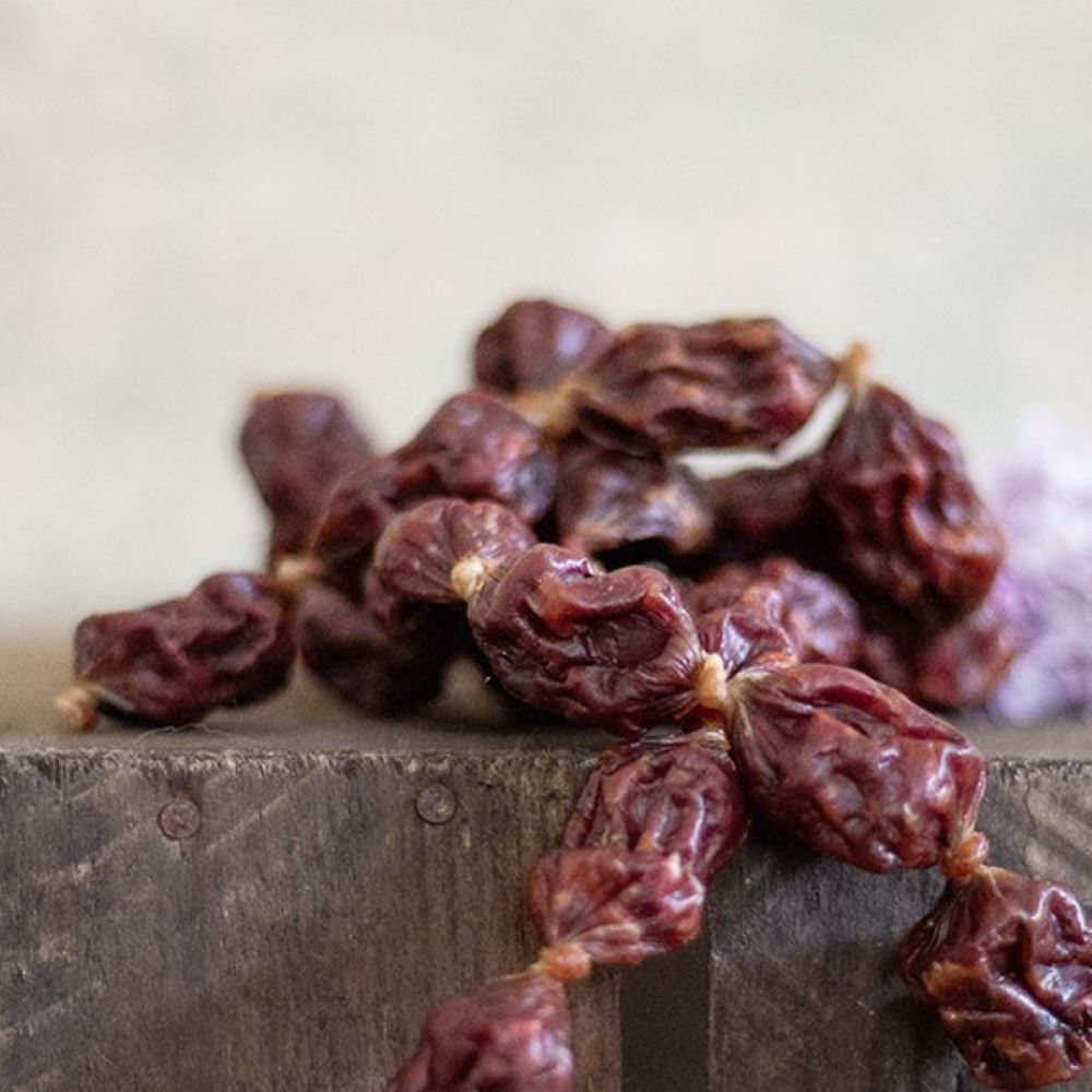 Feinste Hundepralinen als Würstlkette aus Ziegenfleisch, Kokos, Cranberries und Hagebutte, nicht nur unglaublich lecker, sondern auch unglaublich gesund.
