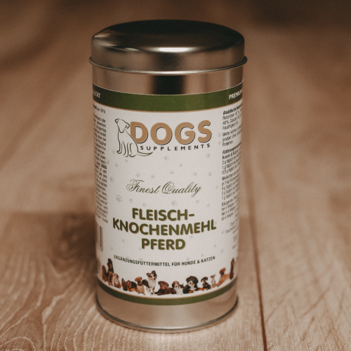 Bei Barfrationen ohne Knochenfütterung ist Fleischknochenmehl die natürlichste Alternative, um ausreichend Kalzium sowie weitere im Knochen enthaltene Mineralien zu ergänzen.