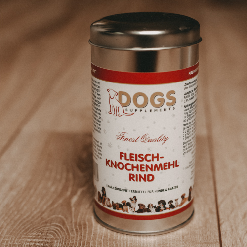 Bei Barfrationen ohne Knochenfütterung ist Fleischknochenmehl die natürlichste Alternative, um ausreichend Kalzium sowie weitere im Knochen enthaltene Mineralien zu ergänzen.