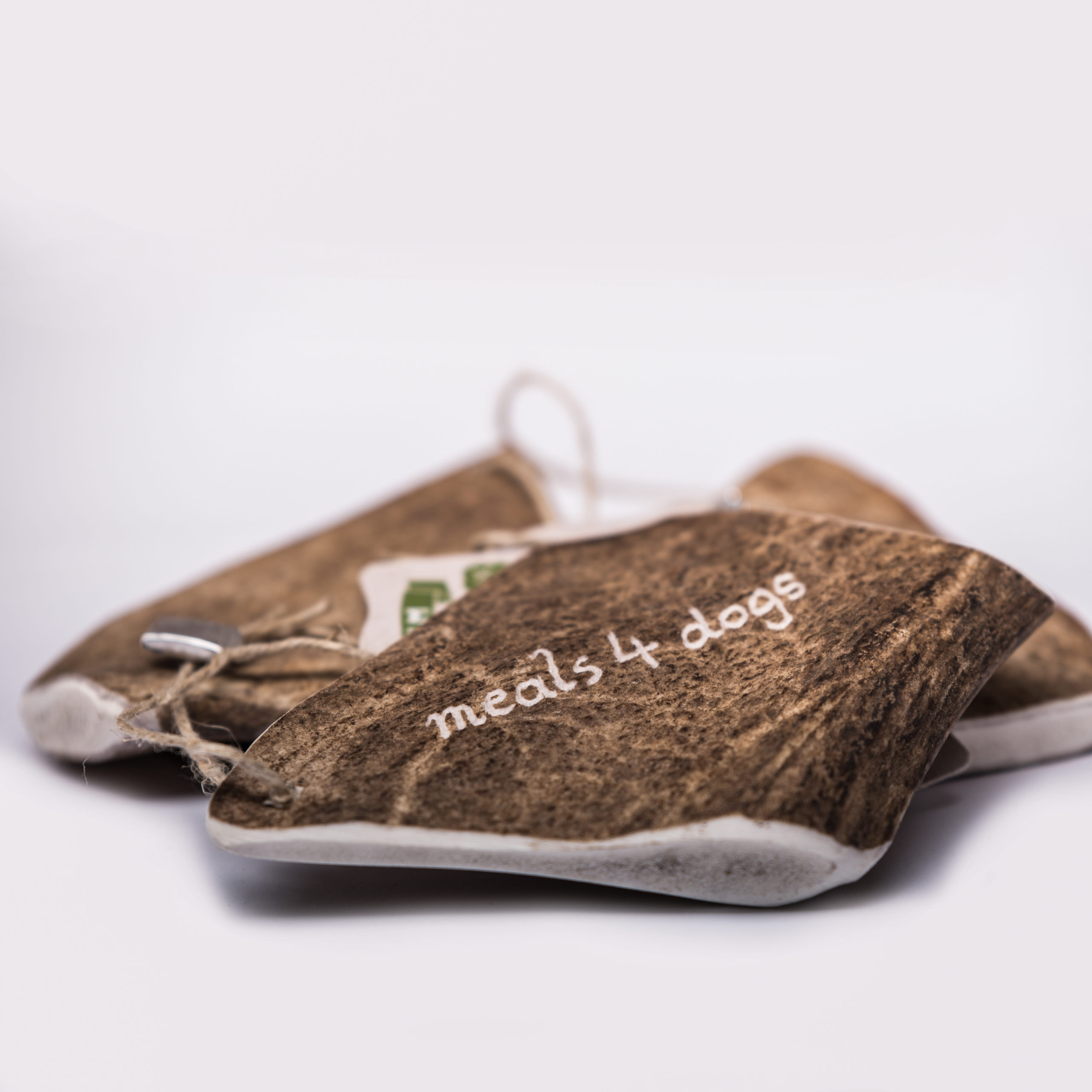 Wir fügen unseren Abwurfstangen keine künstlichen Farbstoffe, Geschmacksverstärker, Aromen oder Konservierungsstoffe hinzu. Sie bestehen also zu 100% aus Geweihknochen. Für einen natürlichen Kaugenuss.