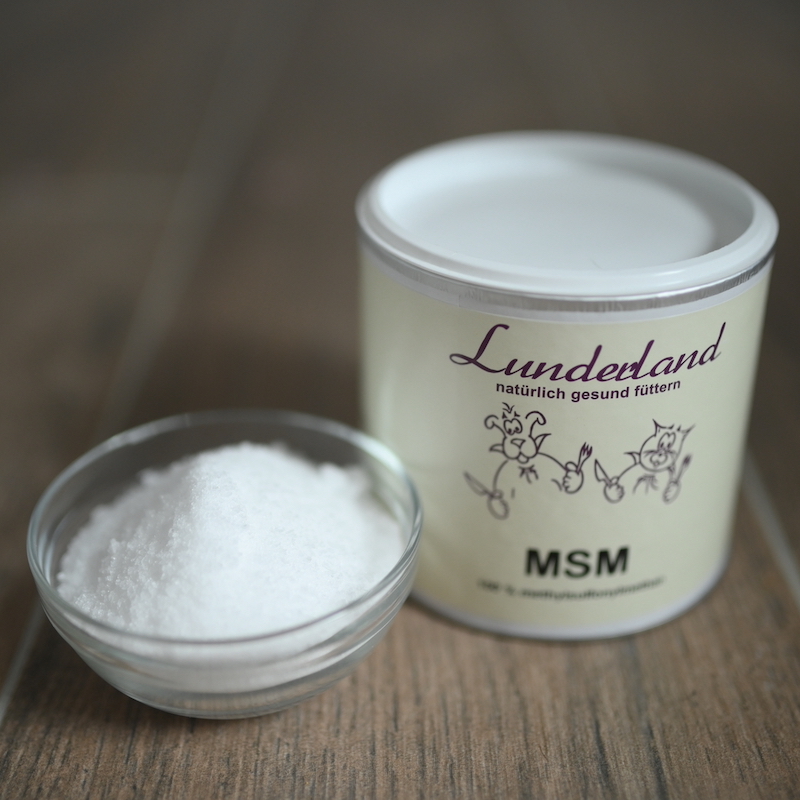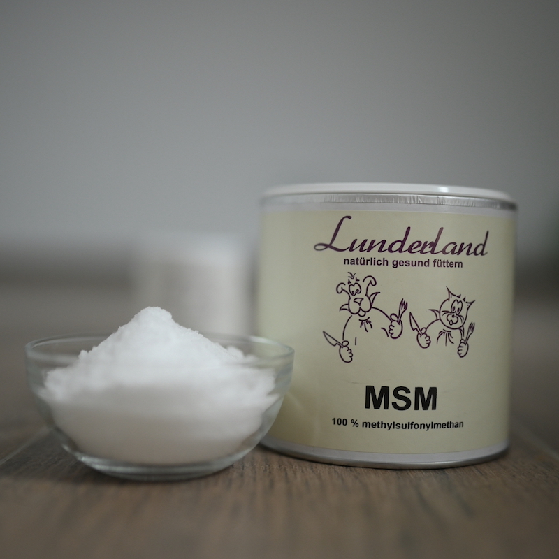 Hunde leiden oft, ganz besonders altersbedingt, unter Arthritis, Arthrose und Entzündungen. Hier kann MSM erfolgreich eingesetzt werden. Innerhalb von kurzer Zeit der Einnahme von MSM wird man bei dem Hund einen großen Unterschied im Verhalten feststellen. Er wird nicht mehr träge herumliegen oder sich langsam bewegen, sondern wird wieder gerne laufen, rennen und spielen. Ebenfalls bei Allergien der Atemwege und Hautallergien kann MSM ein großartiges Hilfsmittel sein, es wirkt entgiftend und unterstützt daher auch die Leberfunktion und die Funktionen des Magen- und Darmtraktes. MSM hat eine antioxidative Wirkung und kämpft gegen freie Radikale im Körper. Des Weiteren ist dieses Heilmittel auch gut für das Bindegewebe. Studien beweisen das MSM ohne Nebenwirkungen eingesetzt werden kann.