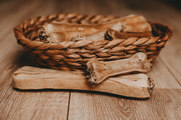 Kauknochen aus gepresster Büffelhaut gefüllt mit Rinderpansen