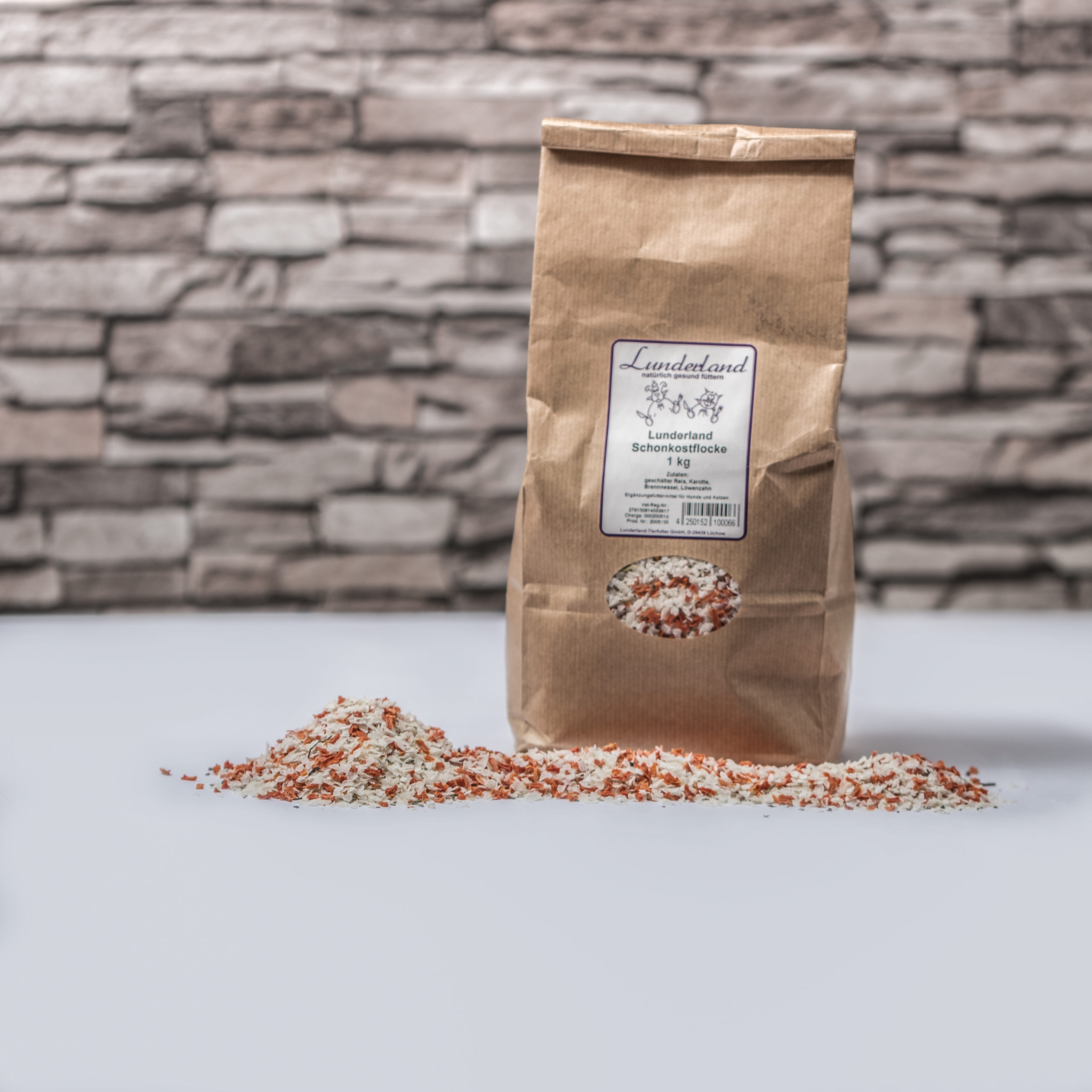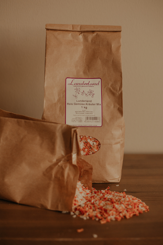 Um 100g eingeweichte Flocke zu erhalten, benötigen Sie ca. 25 g Lunderland-Gemüsemix und ca. 75 g warmes bis heißes Wasser.